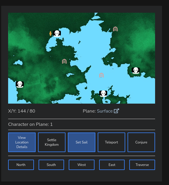 Adventure on a map by clicking the action buttons. Set sail from one port to the other, traverse to other planes of existence!
